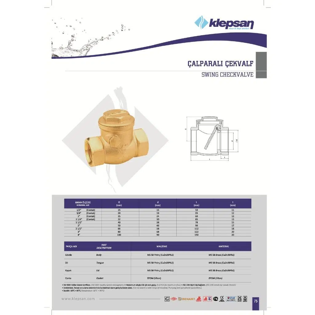 | Etiketler | Klepsan Çalparalı Çekvalf 3'' DN80 PN16 Klepsan Sarı Metal |